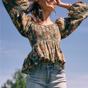 Smocked Waist Floral Print Blouse