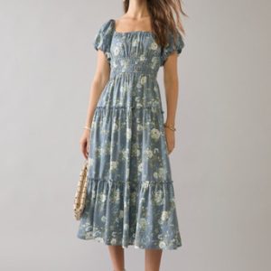Tiered Floral Puff Sleeve Midi Dress